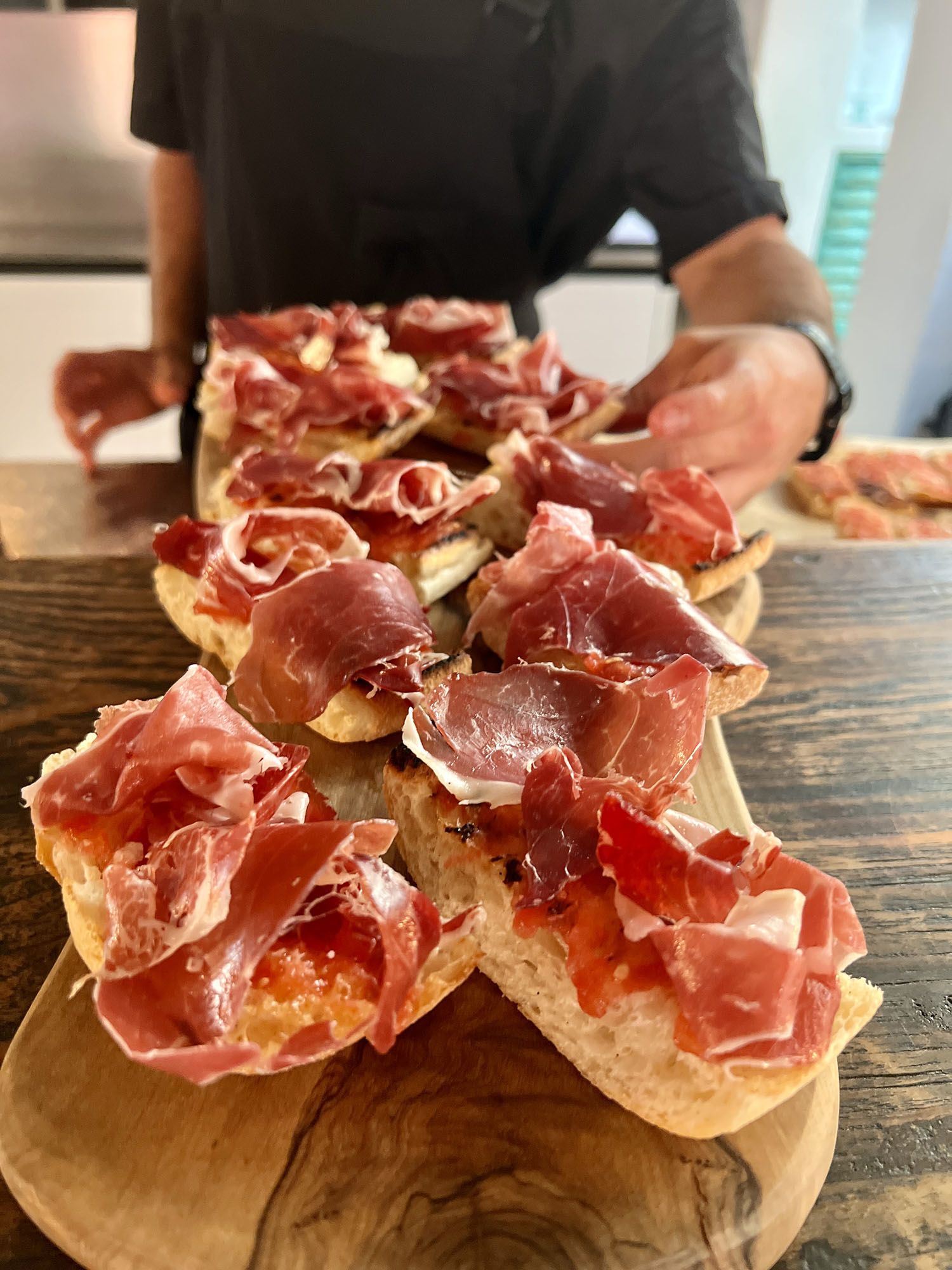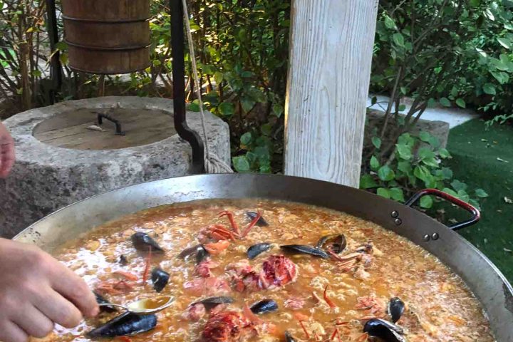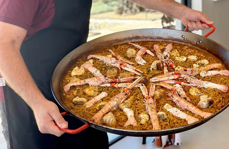 One of our menu options features a carefully selected assortment of the best typical Spanish tapas, followed by an authentic paella cooking show, showcasing wild fish and fresh seafood from Ibiza.